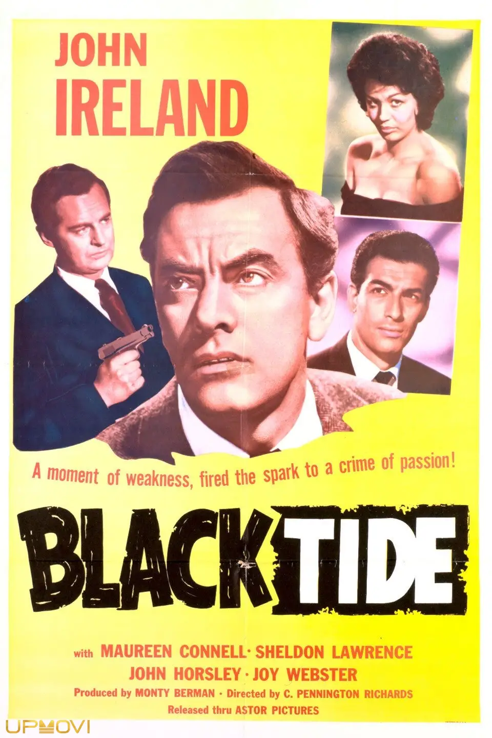 پس از قتل معشوقهاش، شناگر کانال جوی وبستر، درک باند سعی میکند همین کار را با دوستپسر دیگر او، شلدون لارنس، انجام دهد. جان آیرلند نقش یک کارآگاه اینترپل را بازی میکند که از جنایات قاتلانه باند جلوگیری میکند. "جزر و مد سیاه" توسط مونتی برمن در روزهای پیش از "سنت" تولید شده است.